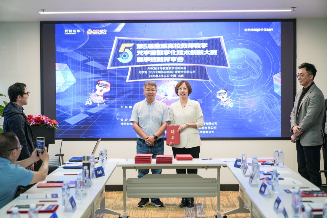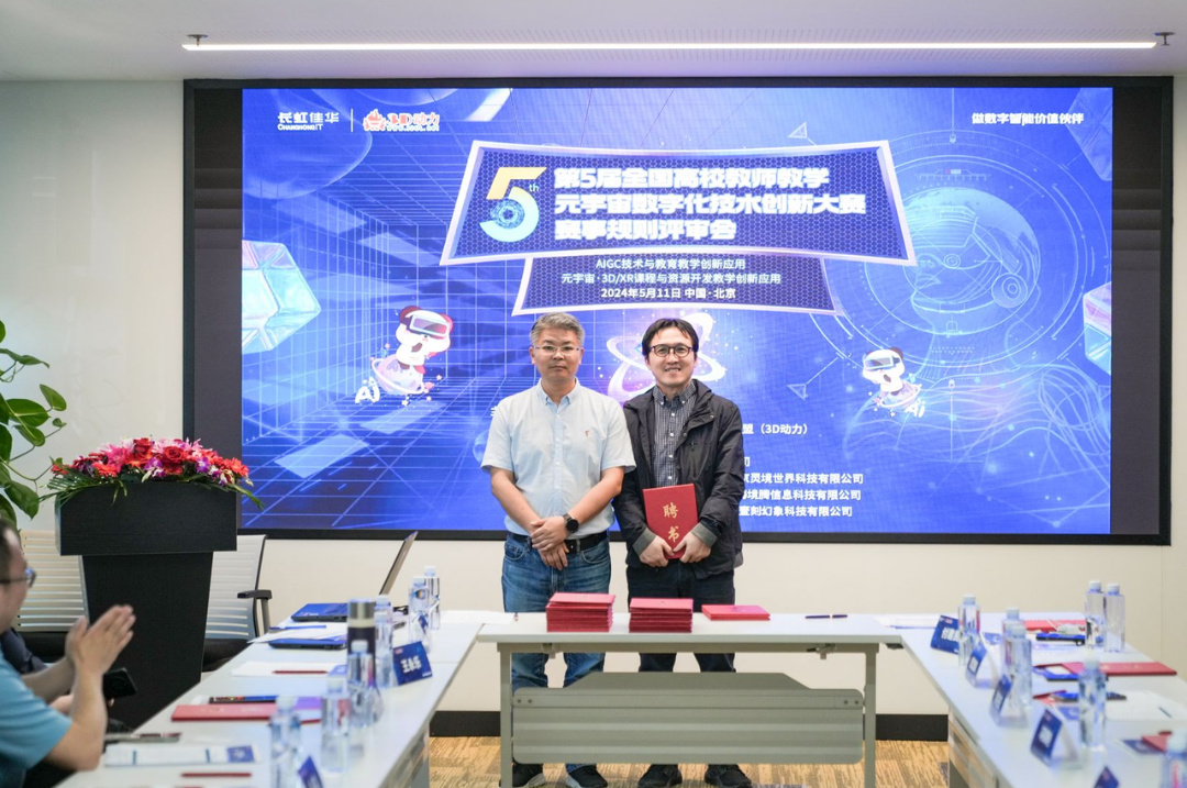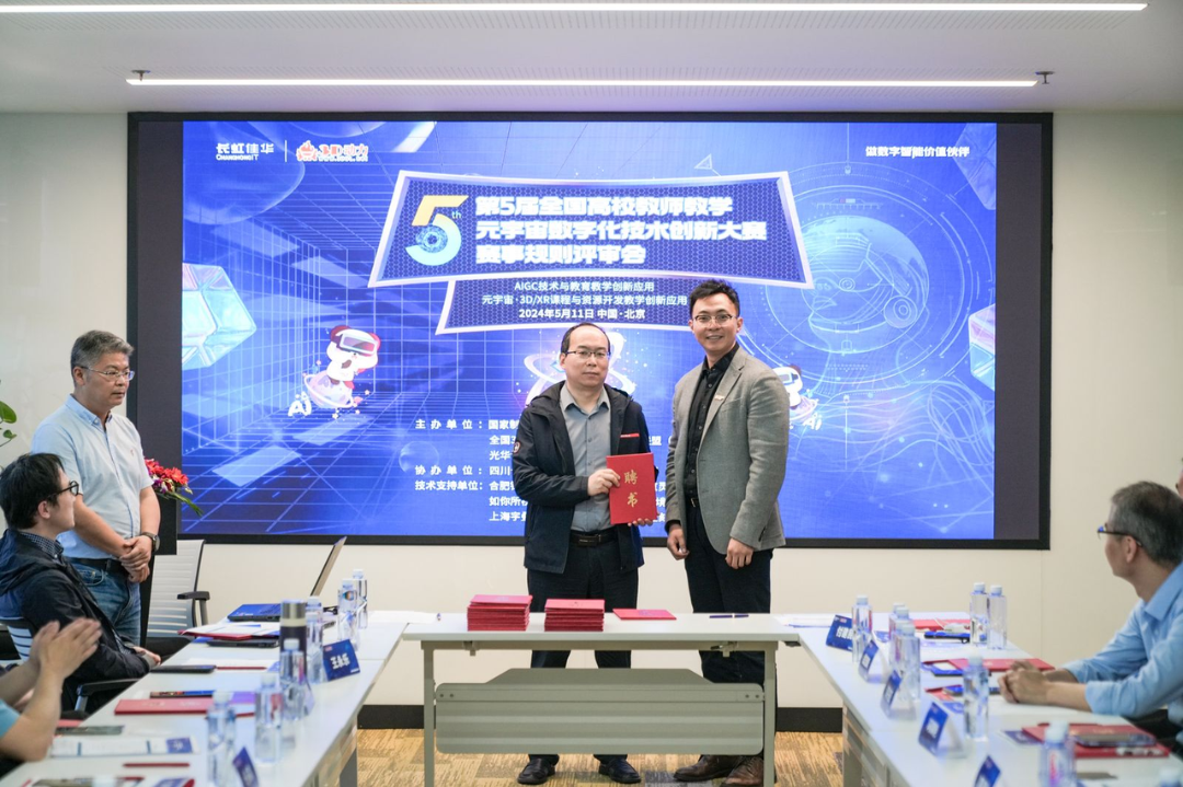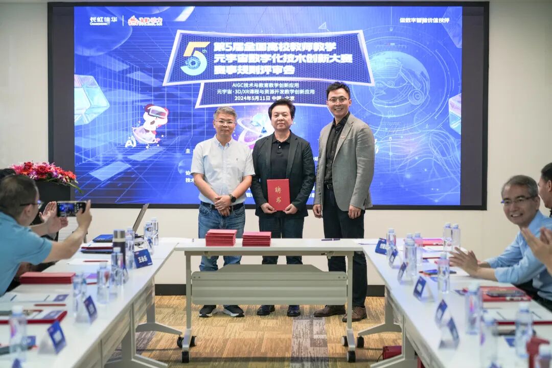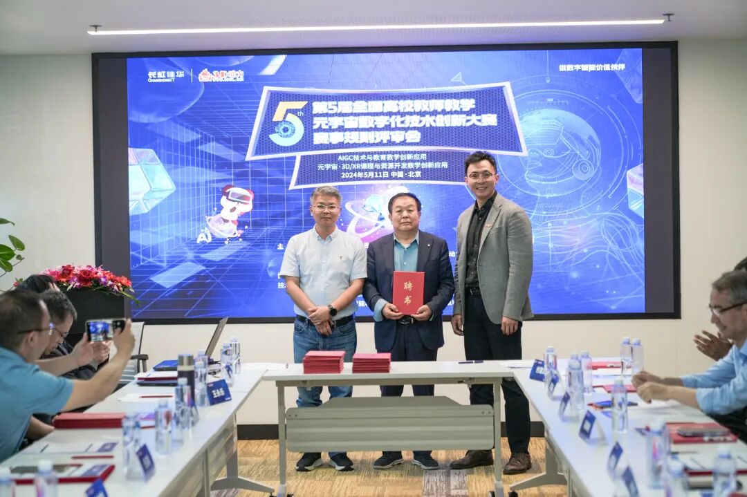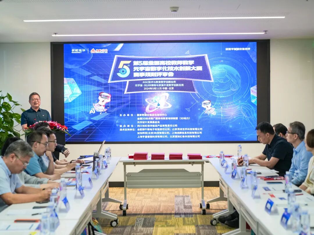 近日,“2024年第5届全国高校教师教学元宇宙数字化技术创新大赛”(以下简称:全国3D教师大赛)启动仪式暨赛事规则评审工作会议在北京长虹科技大厦举行。作为大赛协办单位,长虹佳华组织来自全国各地的评审专家们参与会议,深入探讨AIGC、元宇宙技术应用与数字化教学的融合,在推动教育教学高质量发展、培育培养新质人才方面的重要作用,共同擘画以创新应用引领数字教育变革的蓝图。