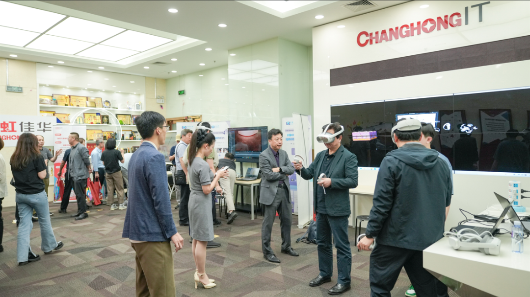 仪式结束后,参加启动会的专家们来到长虹佳华展厅,现场体验长虹佳华元宇宙相关产品和解决方案,这些创新产品和解决方案也将应用于后续省赛和国赛的技术支持和师资培训中。